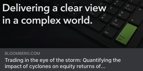 In the white paper “Quantifying the Equity Impact of Cyclones on Manufacturers,” Bloomberg’s Quant Research and Maps Engineering teams examine how a cyclone’s forecasted landfall can impact U.S. companies and their suppliers, both before and after a storm. For comparison, they also study the performance of Japanese stocks, which have been particularly impacted by a number of mega-storms over the past two years.